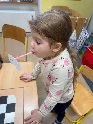 Bílý čtvrtek v 1.třídě MŠ a rozfoukávání barev brčkem
