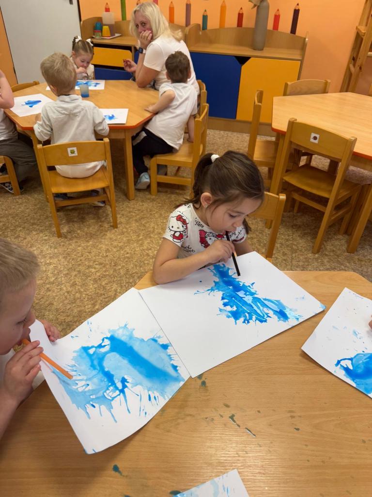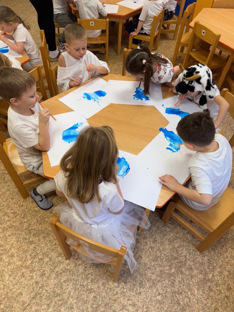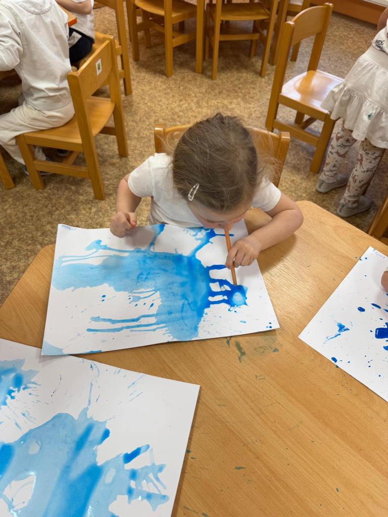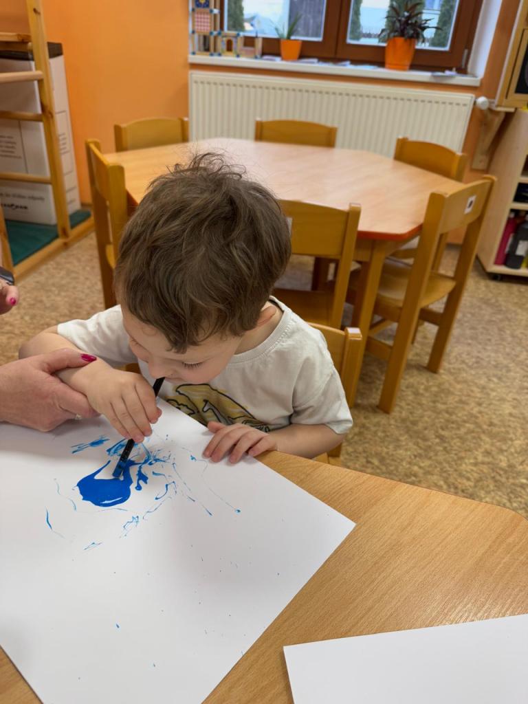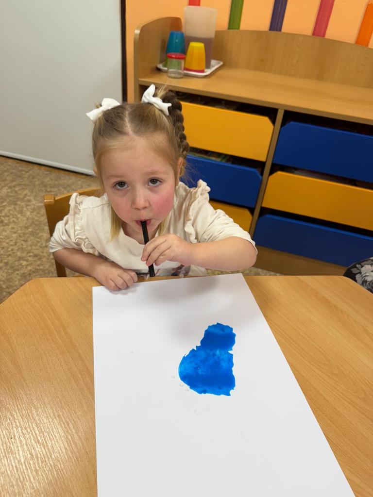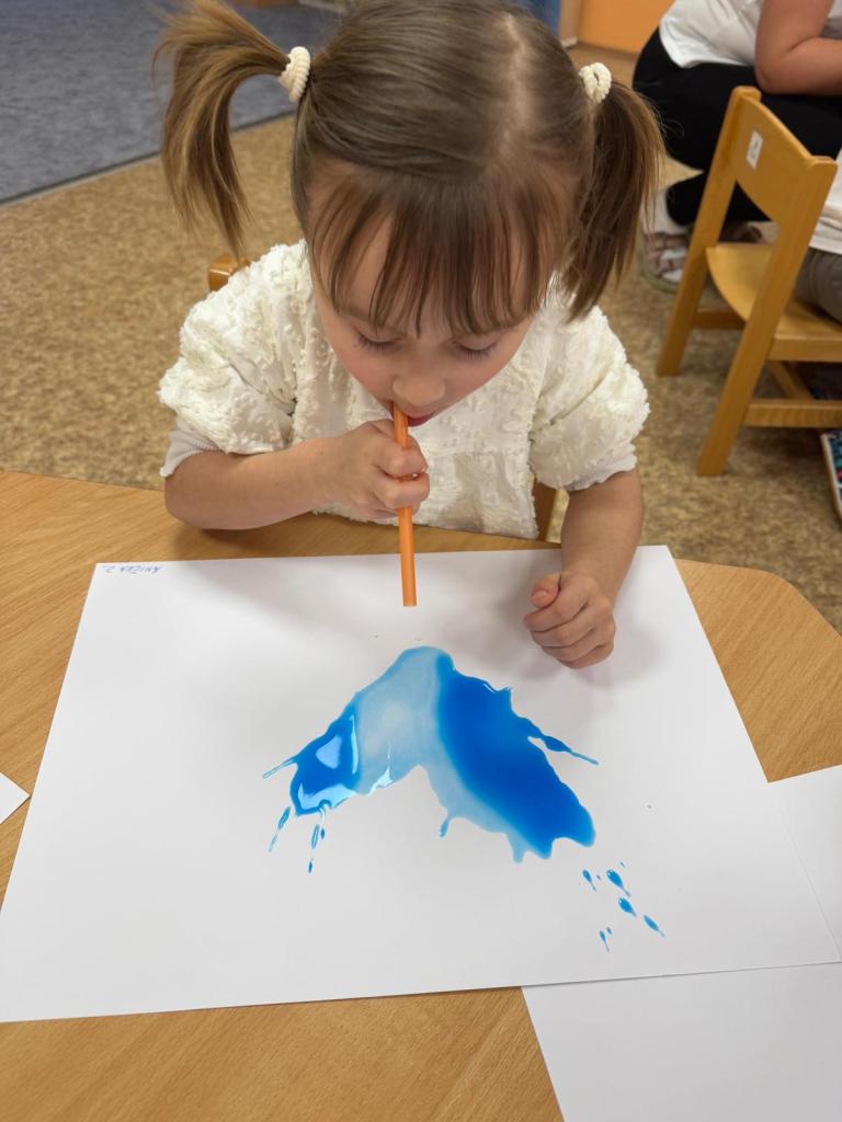 Bílý čtvrtek v 1.třídě MŠ a rozfoukávání barev brčkem