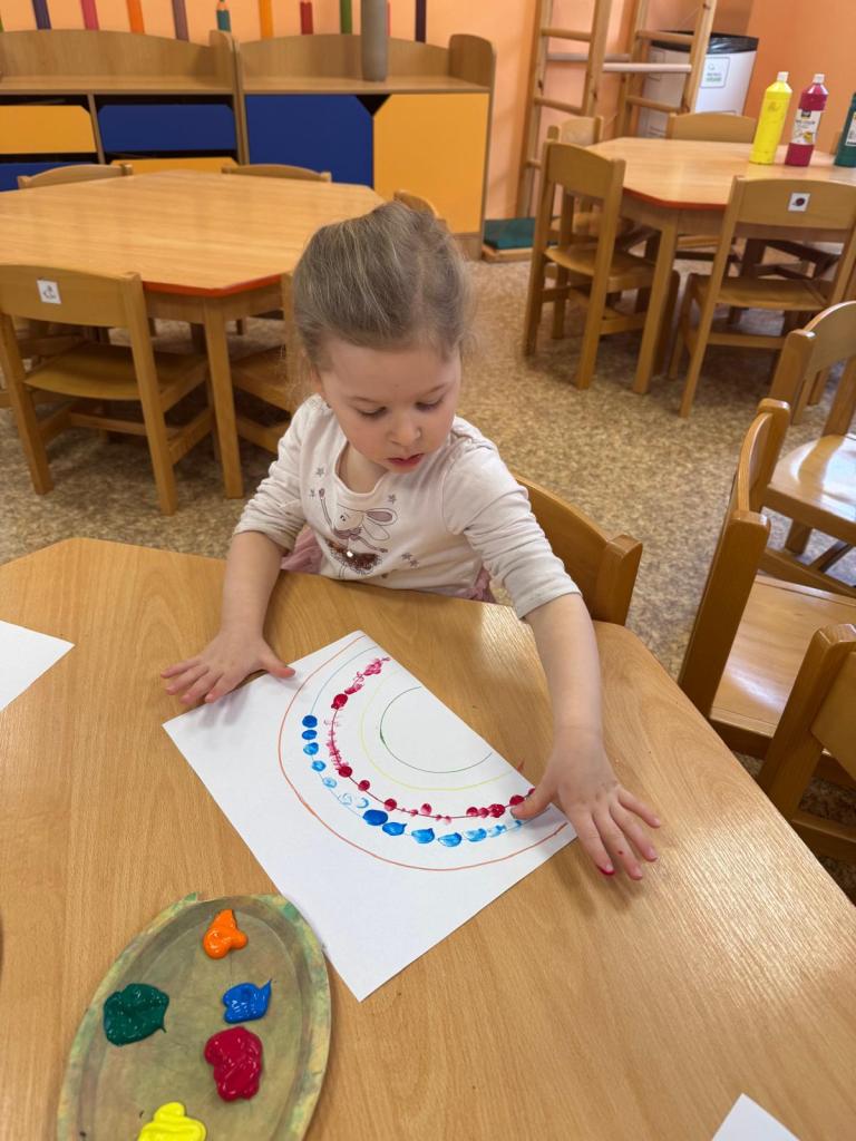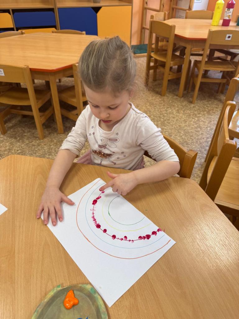 Cviky na klenbu nohou, míchání barev a malování prstíčky