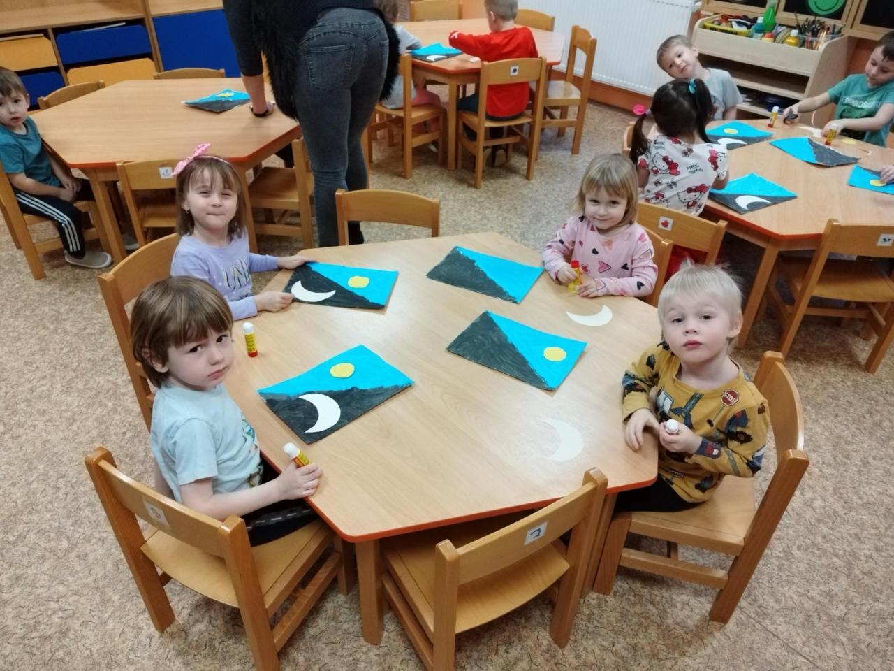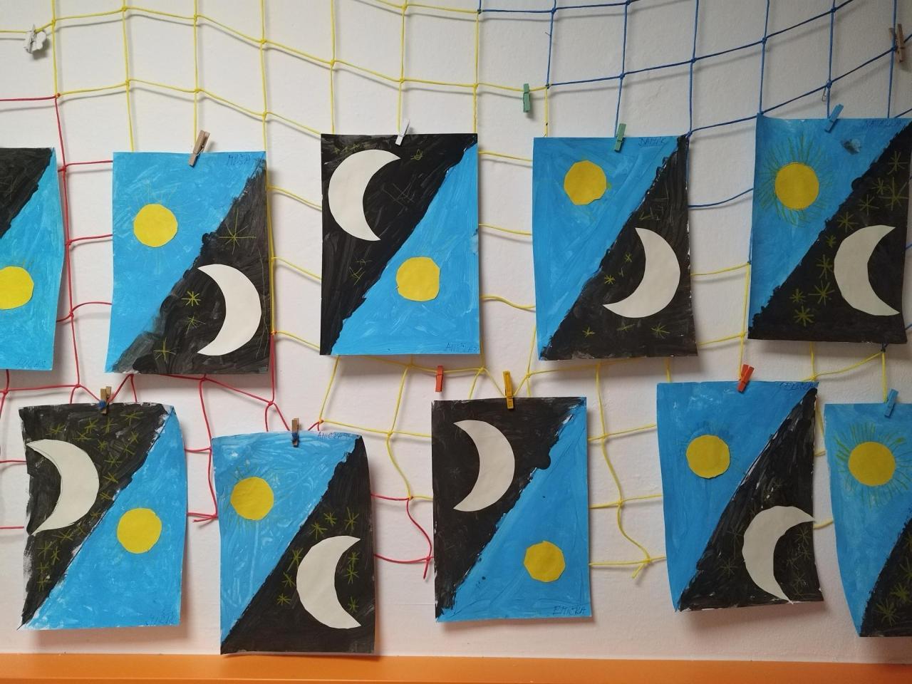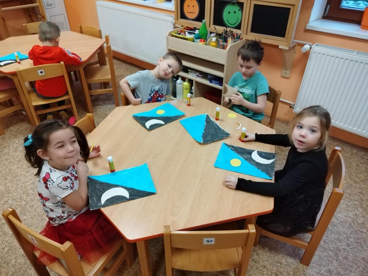 Pomocí pohybové hry Den a noc se děti naučily básničku Slunce a měsíc. A během smyslové hry hledaly po sluchu budík ukrytý ve třídě.