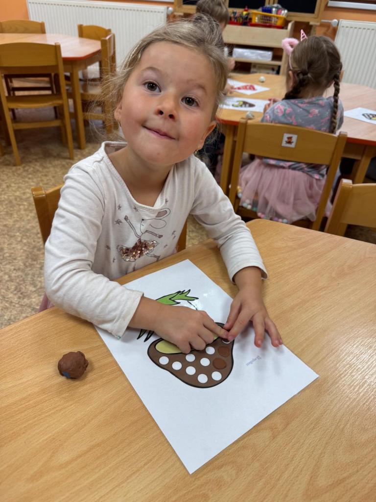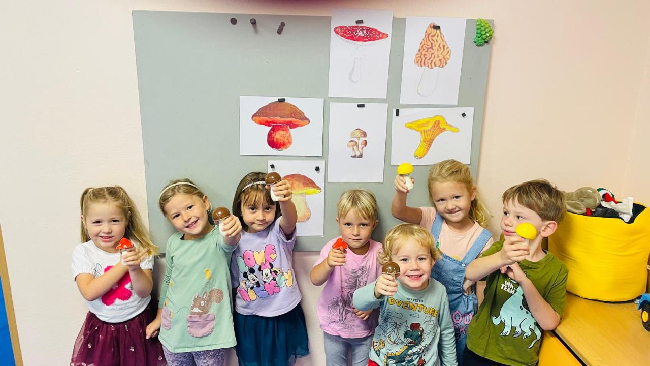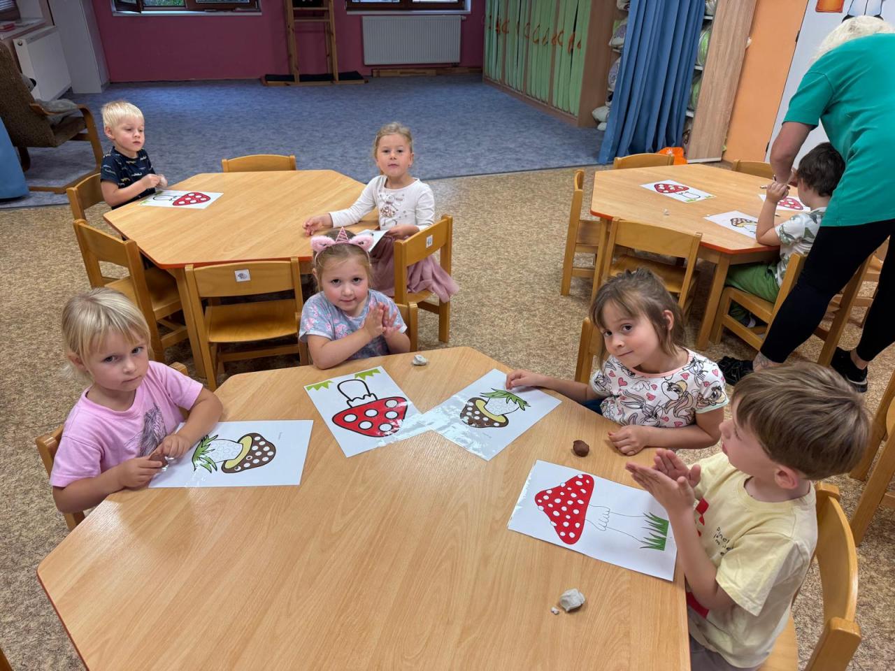 Takže jsme se mohli pustit do aktuálního tématu a tím je houbaření. Děti si osvojovaly názvy některých hub. S houbami jsme nejen cvičili, ale hráli i různé hry a využili jsme je i k práci s modelínou a rozvoji předmatematických dovedností.