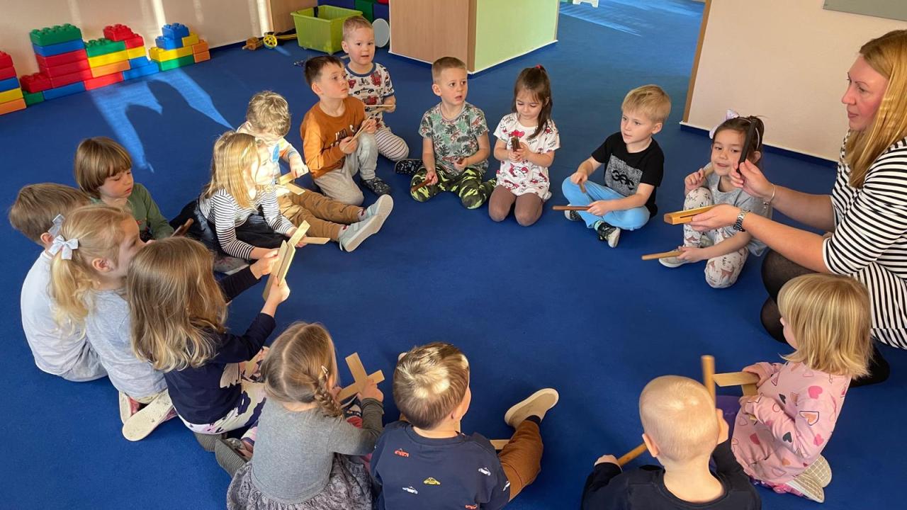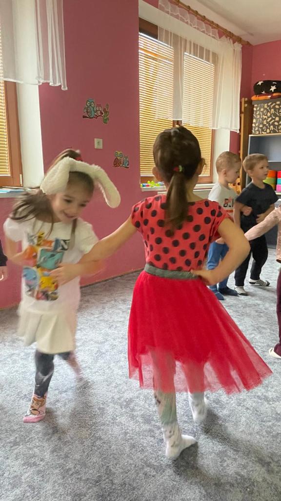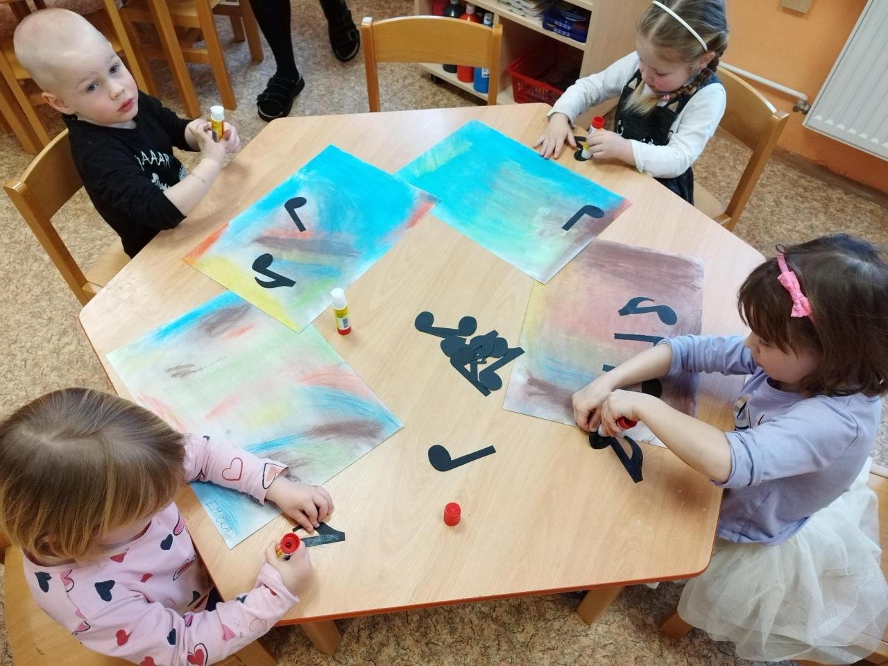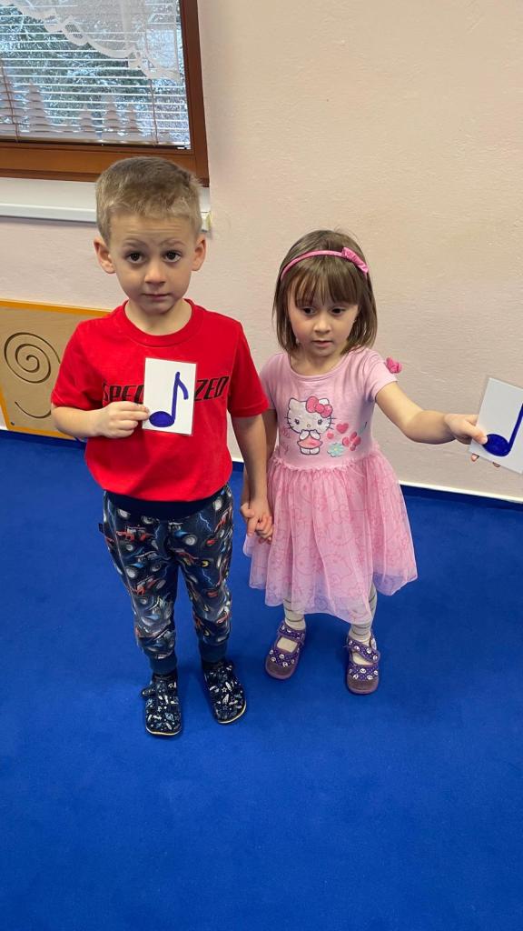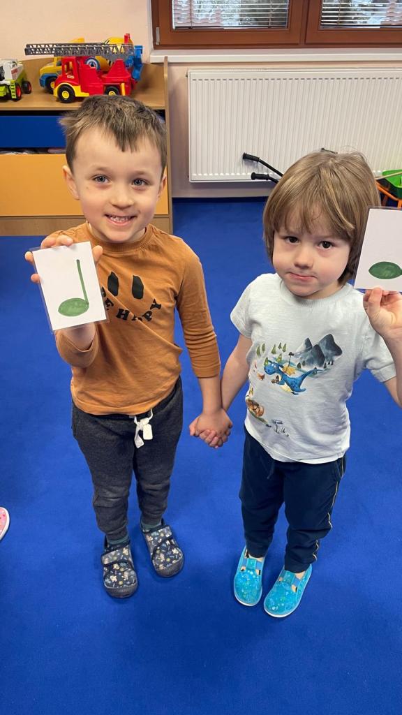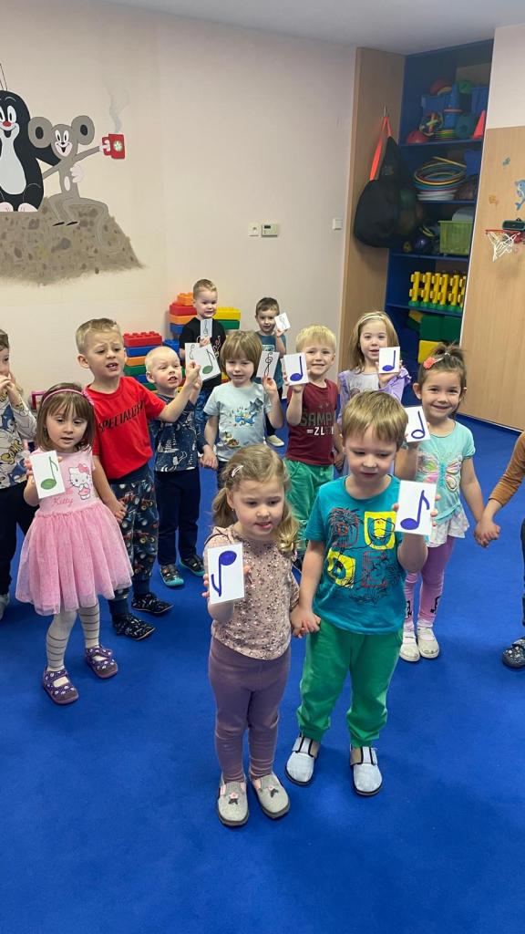 Už podle názvu týdne je jasné, na co jsme se v něm zaměřili. Hodně se zpívalo a hrálo, nejen na hudební nástroje, ale i na vlastní tělo. Děti se naučily Ptačí tanec. Díky videoprojekci se seznámily s různými tanečními styly. Nejvíc se jim líbil balet, step a tanec na ledě – krasobruslení. Děti se formou hry a pracovní činnosti seznámily s houslovým klíčem a notami. Při výtvarné výchově mladší děti zkusily techniku s prašnou křídou a starší děti drtily voskovky, které jsme pak rozpíjeli pomocí žehličky. Tato technika je nadchla. Při poslechové činnosti jsme se zaměřili na zvuky různých hudebních nástrojů.
