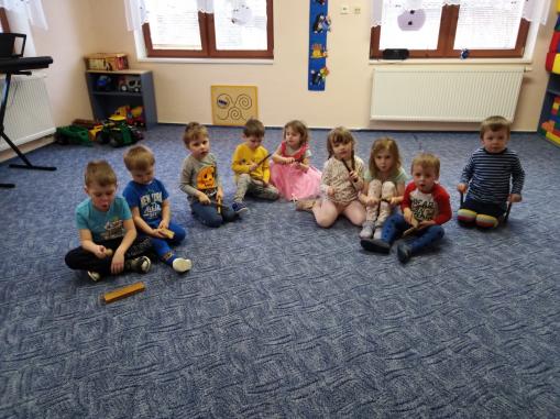 V týdnu s tématem Zpíváme, hrajeme a tančíme se děti měly možnost blíže seznámit s řadou hudebních nástrojů, nejen s tím jak tyto nástroje vypadají, ale především jak znějí. Pomocí různých didaktických her jsme rozvíjeli sluchové vnímání i rytmus. Děti se měly možnost seznámit s houslovým klíčem a notami. Naučily se Ptačí tanec a procvičily si řadu lidových písniček za doprovodu nástrojů Orffova instrumentář. Společně jsme si z papíru vyrobili klavír.
