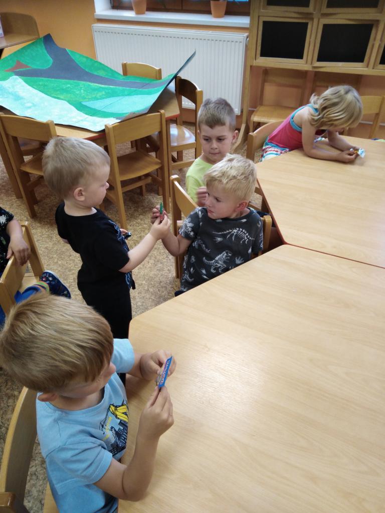 Děti z 1.třídy si hrály na dopravní prostředky.