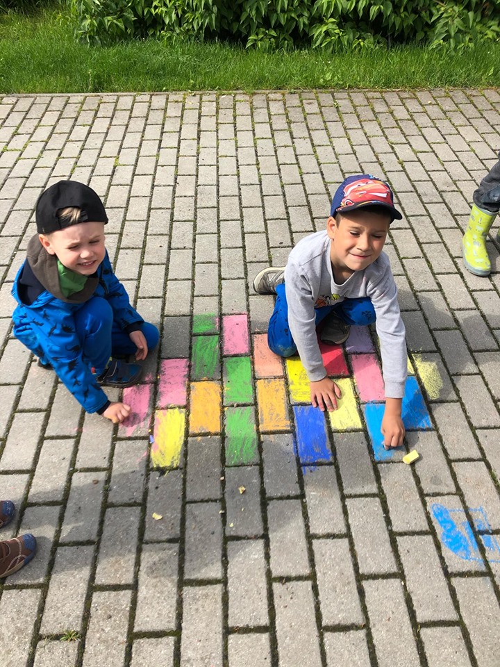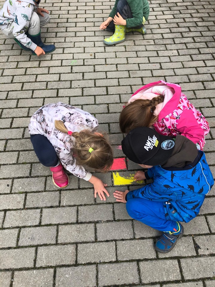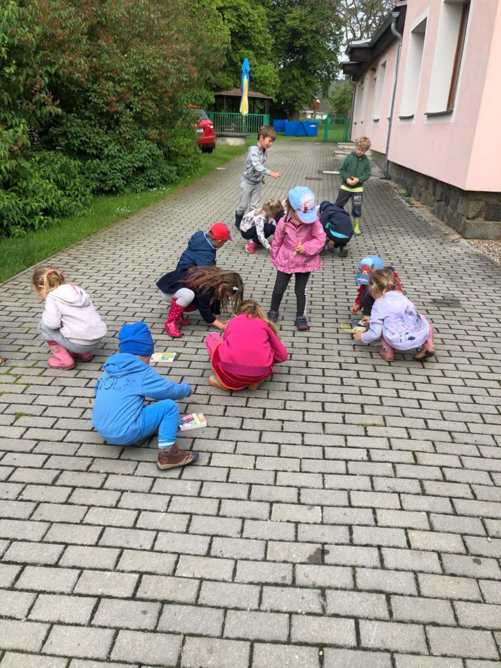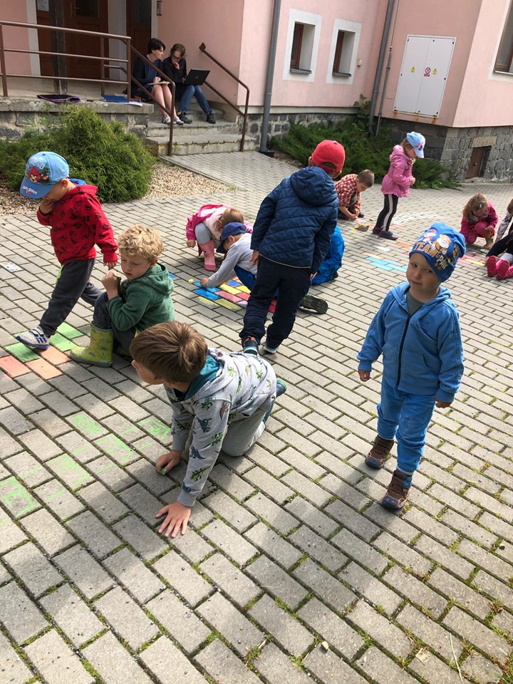 Děti z MŠ vyzdobily dlažbu před školkou