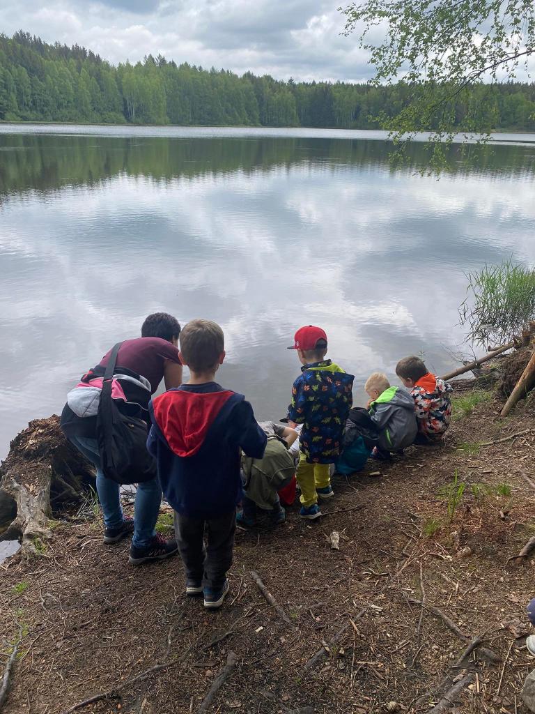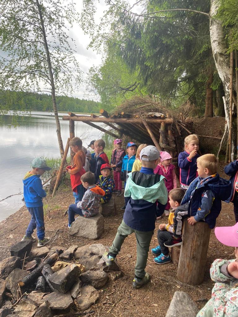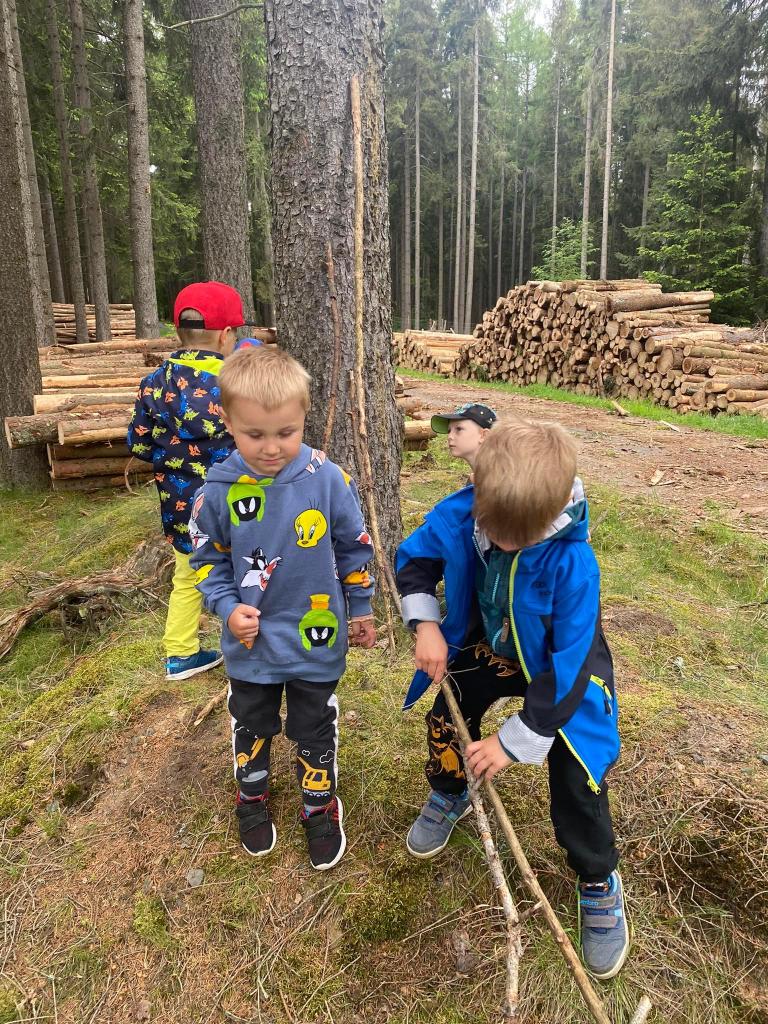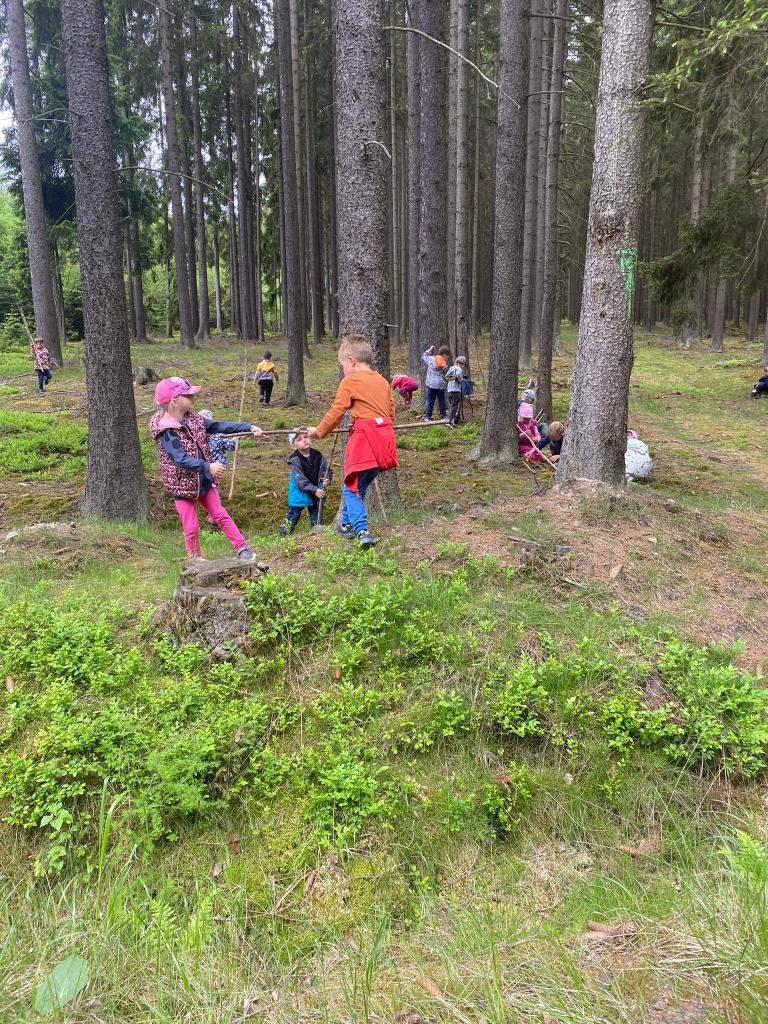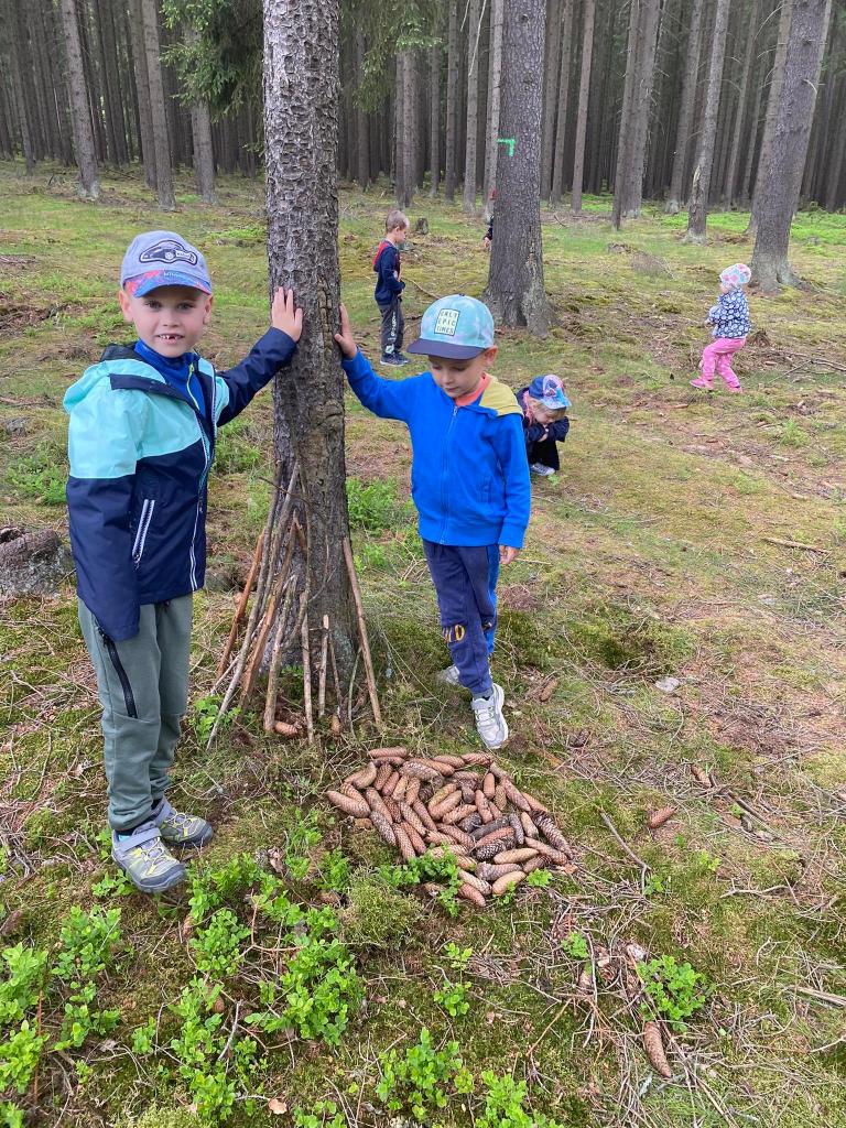 Cestou kolem rybníku si v lese stavěly chaloupky.
