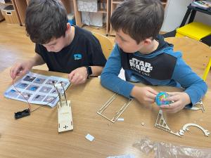 Sestavení dřevěných modelů znázorňujících pohyby Země, její rotaci kolem osy a oběh kolem Slunce.